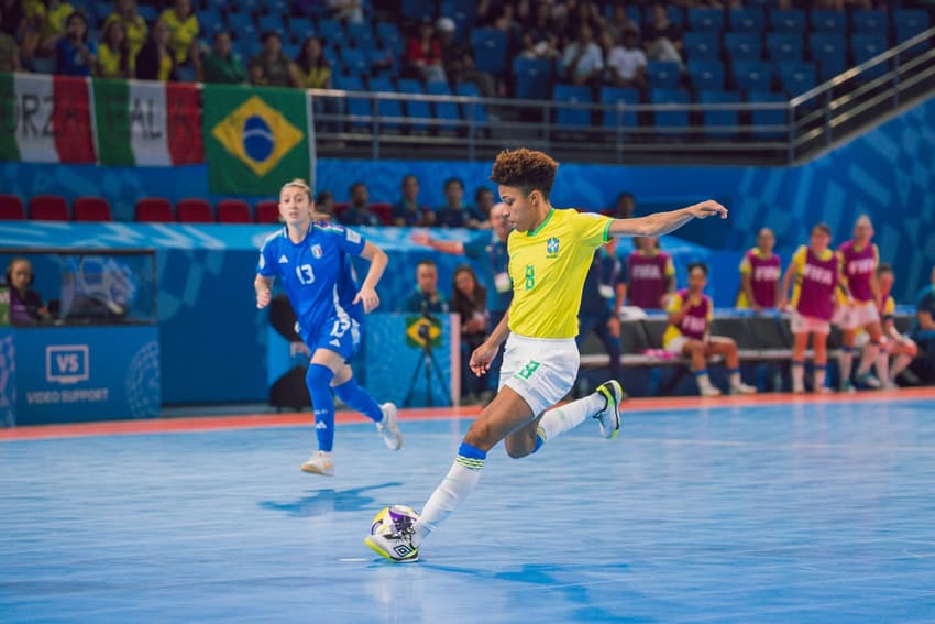 A seleção brasileira de futsal feminino venceu a Itália por 6 a 1, garantindo classificação antecipada na Copa do Mundo.