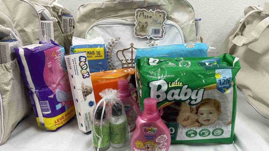 As mães que participaram do encontro receberam bolsas contendo produtos cruciais para a rotina de cuidados com o bebê e para o bem-estar da mãe no pós-parto. A iniciativa visa garantir que as famílias tenham o necessário para o início da jornada com o recém-nascido.