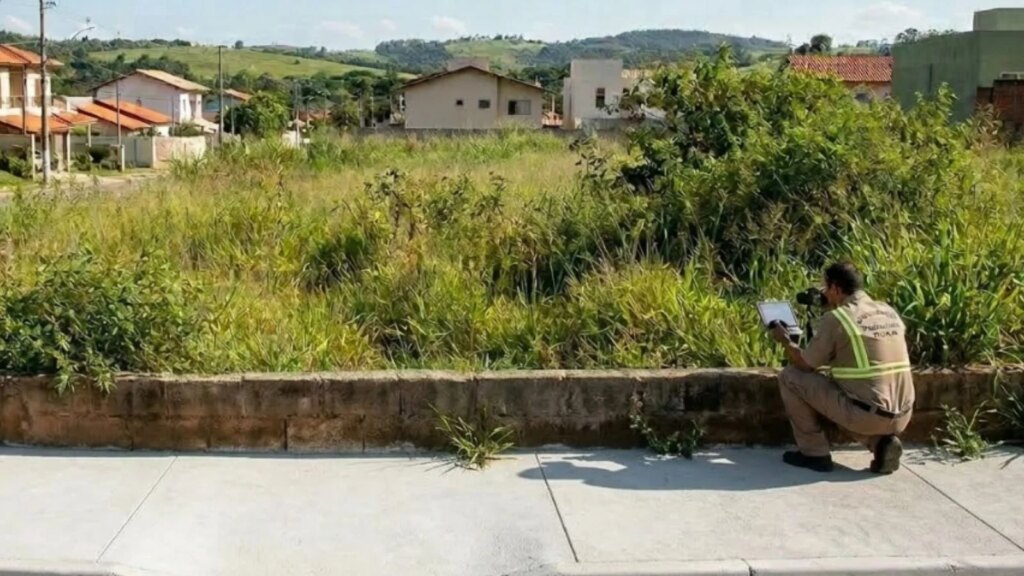 Um fiscal municipal identifica os terrenos com vegetação superior a 30 centímetros ou com acúmulo de resíduos. O proprietário do terreno é então notificado formalmente.