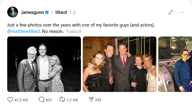 Entre as vozes que se manifestaram a favor de Lillard, James Gunn se destacou. O diretor, conhecido por seus trabalhos em blockbuster de super-heróis e como chefe criativo do DC Studios, utilizou suas redes sociais para mostrar apoio ao ator. Em um post no Threads, Gunn publicou fotos antigas ao lado de Lillard, acompanhado da legenda: “Apenas algumas fotos ao longo dos anos com um dos meus caras favoritos (e atores). Sem motivo.” Essa postagem foi interpretada como um gesto claro de solidariedade, especialmente considerando o contexto.