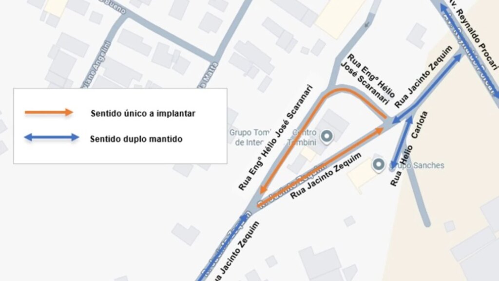 As ruas Engenheiro Hélio José Scaranari e Jacinto Zequim foram convertidas em vias de sentido único, operando em direções opostas para criar um sistema de circulação rotatória. Essa modificação visa dar mais fluidez ao tráfego local.