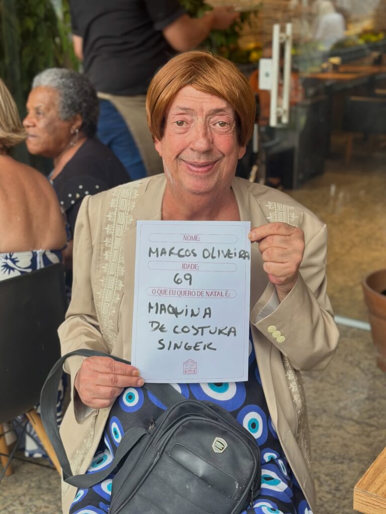 A campanha, divulgada nas redes sociais do Retiro dos Artistas, convida os residentes a expressarem seus desejos de Natal em plaquinhas que contêm seu nome, idade e o presente que gostariam de receber. A ideia é que pessoas sensibilizadas possam contribuir para tornar esses desejos realidade. Marcos Oliveira apareceu segurando sua plaquinha, onde escreveu “Marcos Oliveira, 69 anos”, e expressou seu desejo por uma máquina de costura da marca Singer, mostrando que, mesmo em um ambiente de acolhimento, os sonhos permanecem vivos.