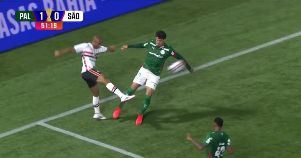 No entanto, a aplicação dessa diretriz parece ter sido exagerada na semifinal. Aos seis minutos do segundo tempo, com o Palmeiras à frente no placar por 1 a 0, o lateral Lucas cruzou a bola na área e o zagueiro Gustavo Gómez abriu o braço, cometendo um pênalti flagrante. Apesar da clareza do lance, a árbitra Daiane Muniz não assinalou a penalidade, e o VAR, chefiado por Thiago Duarte Peixoto, não interveio.