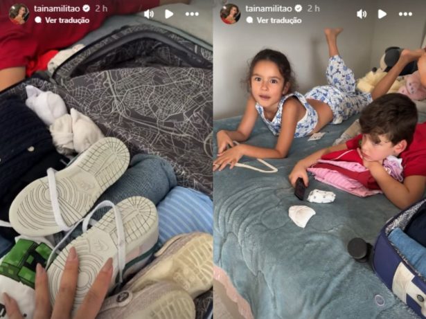 Em vídeos publicados nos stories, Tainá organizou cada peça de roupa com carinho e atenção, mostrando o que levaria para a viagem. “Terminando de fazer a mala das crianças. Porque eu gosto de fazer, de arrumar, de ver o que vai e não vai. Os dois estão aqui”, explicou, enquanto exibia roupas, casacos e acessórios que levariam.