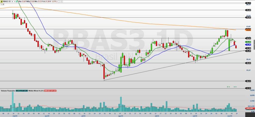 No caso de BBDC4, o papel fechou em R$ 18,90, e qualquer perda de suporte entre R$ 18,69 e R$ 17,88 poderia indicar uma correção mais profunda. Para o Itaú, que encerrou a última sessão a R$ 39,85, é vital recuperar as médias móveis e superar a resistência em R$ 40,16 para evitar um aprofundamento na correção.